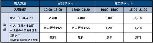 ※4月29日(火)以降、入場日の2週間前の日本時間 午前0時から販売されます。