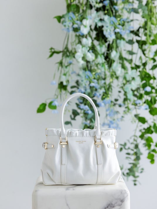 ブランド特有のフェミニンな印象をそのままに、トレンドにあわせてデザインをアップデート。本革の素材と細部にまで施された上品さが、毎日のスタイリングを華やかにしてくれます。ベルトやギャザーを寄せたデザインがワンポイントに輝くシリーズです。