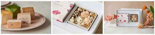 さらに、公式オンラインストア・LINEギフト限定で「Mr. CHEESECAKE assorted 4-Cube Bloom」と「BASQUE CHEESECAKE Original - Limited Box - 」のそれぞれにオリジナルフラワーボックスを組み合わせたフラワーセットも登場します。天然の花材「ソラの木」でローズやダリアの形を作ったソラフラワーと、その周りにドライフラワーを合わせて華やかな印象に仕上げたフラワーボックスは、贈り物をより一層特別なものへと演出します。
