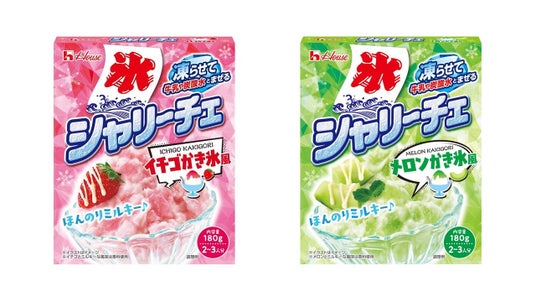 ハウス食品株式会社は、フルーチェの姉妹ブランドで夏季限定発売の「シャリーチェ」から、「シャリーチェ<イチゴかき氷風>」と「シャリーチェ<メロンかき氷風>」を、2025年4月14日(月)からスーパーなどで発売いたします。凍らせて牛乳や炭酸水とまぜるだけで手軽に”シャリっと食感”が楽しめる「シャリーチェ」を、「かき氷風」のおいしさにすることで夏のおうち時間を盛り上げます。内容量180g、オープン価格(税別参考小売価格209円)。