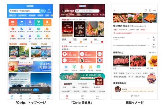 今回の連携強化により、2023年8月より実施していた「訪日旅行」ページへの掲載にくわえ、新たにレストランページである「美食林」への掲載が可能となります。「訪日旅行」ページと「美食林」への同時掲載によって、「Japan ticket」を導入している飲食店は、「美食林」を通じて中国人観光客への認知を高め、予約数の増加が期待できます。また、利用客はシームレスに飲食店の検索から日時予約・決済までの一連の流れを「Ctrip」の画面上で行えるようになるため、顧客体験を損なわずに飲食店の予約が可能となります。