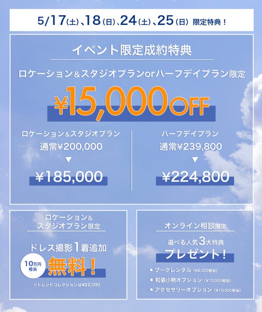 大好評のロケスタプランを記念して、この度5/17・18・24・25の4日間限定でイベントを開催いたします。
