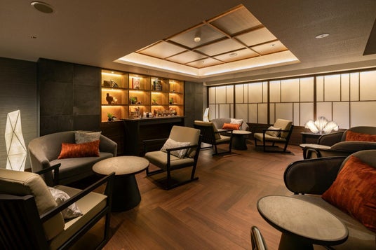 エグゼクティブスイート翠嶺のご宿泊者限定でご利用いただける特別なラウンジ。紅葉名所である二見吊橋からの美しい景色をモチーフにした、趣ある空間です。ドリンクやアルコールを取り揃えており、心安らぐ時間をお過ごしいただけます。