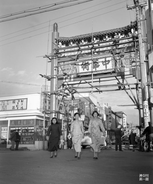 1955年 中華街の牌楼(現在の善隣門)まもなく完成