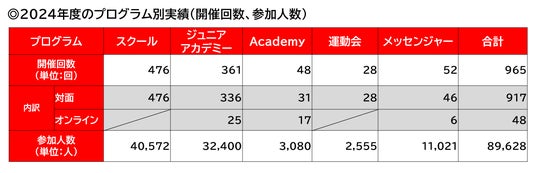 2025年度は、株式会社JTB、株式会社アシックス、日本電気株式会社(NEC)、日本航空株式会社(JAL)、中外製薬株式会社の協賛5社の皆さんと協力しながら 、全国で年間900回以上の開催を目指します。