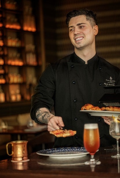 イタリア・ナポリ出身。レストランで働いていた母親や家族の影響で、幼い頃から料理に対する関心を抱き、ピッツァづくりの大会を見に行ったときの会場の高揚感を鮮明に覚えていたアレッサンドロは、夜間にピッツェリアで働き始め、すぐにその才能を開花させます。ナポリの料理学校を卒業後、地元のピッツェリアで技を磨き、ドイツや英国で腕を振るいます。2014年、イタリア・ヴェローナにあるヴィンカンティアーモのピッツァシェフに就任、その後来日し、神奈川県横須賀の「ナポリ ピッツェリア」にてイタリア直伝と技を伝授します。ホテル開業時より、何十世紀もの時を経て芸術の域にまで高められてきたナポリ人が代々受け継いできたピッツァづくりの匠の技をPIGNETOにて披露しています。