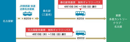 期間中は、名古屋駅・桑名駅↔会場間の無料ギャラリーバスが運行しております。予選【10日(木)・11日(金)】は30分おき、決勝【12日(土)・13日(日)】は15分おきで運行いたします。