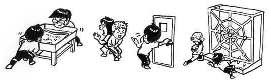 パンが焦げてしまったら、黒こげで絵に描いてしまおう。トイレが使用中なら、ノックして話かけてみよう。蜘蛛の巣に引っ掛かったら遊んでしまおう。ピンチに遭遇したら遊びで乗り越えてしまいましょう。
