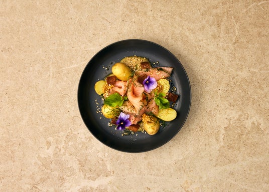 Gravlax, miso-hovmastar-sauce, potatoes|北欧風サーモンマリネ - 味噌風味(税込4,500円)