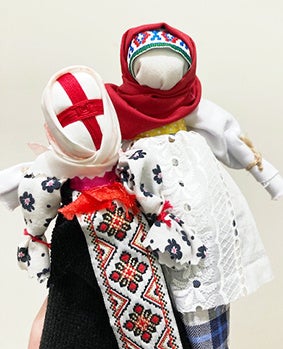 「モタンカ」は、ウクライナで古くから作られてきたお守り人形です。身近な布とウクライナ刺繍のリボンを用い、針を使わずに横浜人形の家スタッフと一緒に作ります。