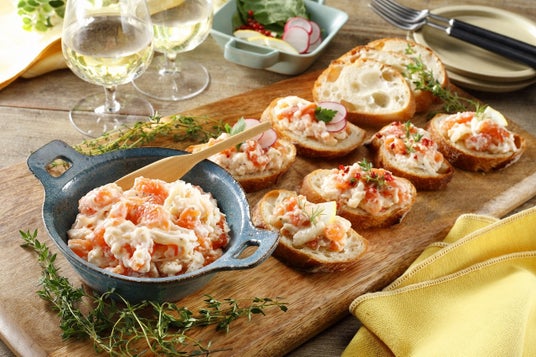 サーモンクリームチーズは、スモークの風味を付けたサーモンに北海道産クリームチーズを加えたサラダです。スライスカットした玉ねぎを配合しており、シャキシャキとした食感もお楽しみいただけます。業務用商品、市販用商品のほか、寿司種規格も販売しています。