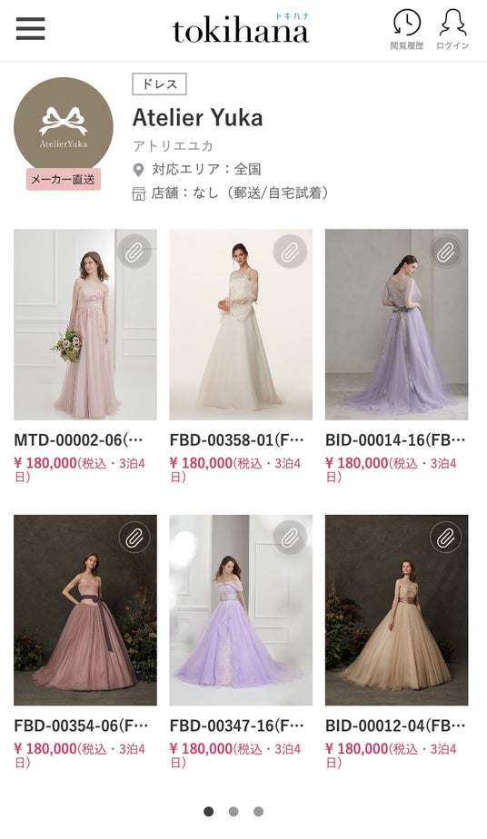 1.トキハナサイト「メーカー直送」またはトキハナLINEから気になるドレスを試着予約
