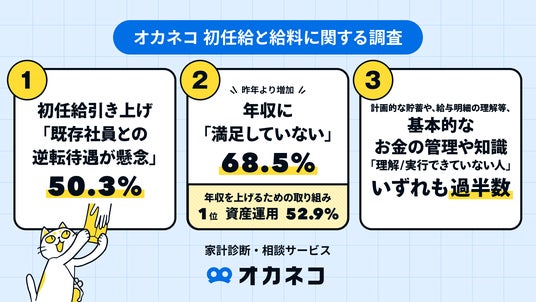 「オカネコ 初任給と給料に関する調査」の主な結果