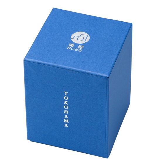横浜をイメージしたスカイブルーの箔押し化粧箱
