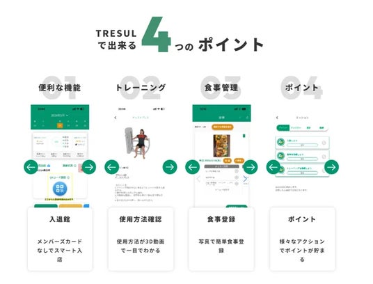 「自己流では限界を感じる」「何から始めていいか分からない」という方におすすめなのが、会員専用アプリ「TRESUL」(トレスル)です。マシンの使い方についてのナビゲーションはもちろん、正しいフォームの確認、目標に合わせたトレーニングメニュー提案など、ジム初心者でも安心して始められるサポート体制が整っています。