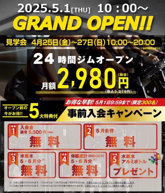 オープン前にジムを見学できる「事前見学会」を開催!【予約不要】