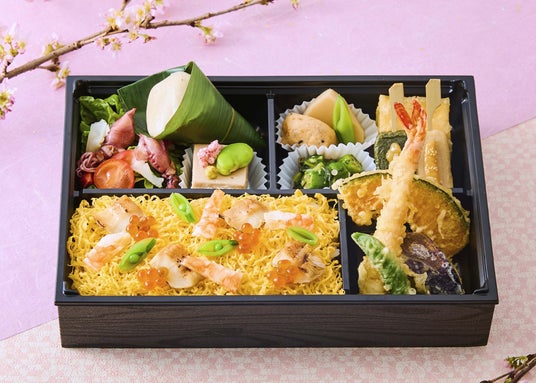 ■色鮮やかなちらし寿司と天ぷらが付いた春限定のお弁当