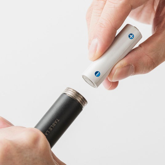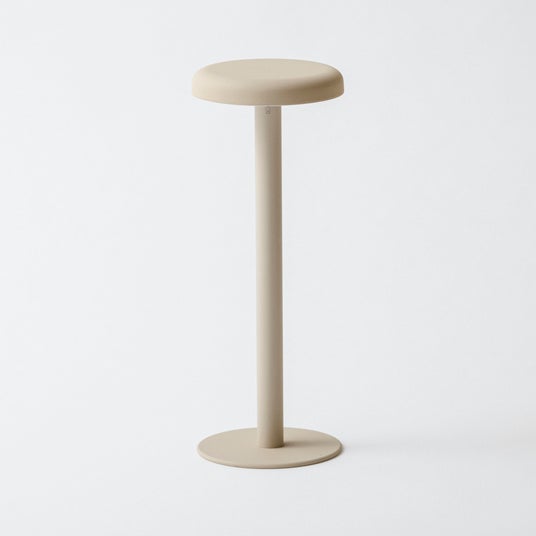 2021年4月の発売以来、暮らしの中はもちろんホテルやカフェなど様々な場所で活躍する乾電池式のテーブルランプ。これまでにブラックの他、ホワイト、サンドベージュ、そして金属の素地を生かしたインダストリアルエディションの合計4色のカラーバリエーションが発売された。