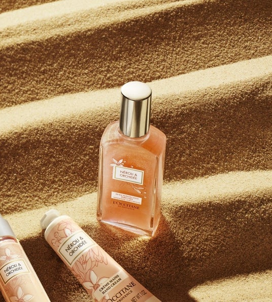 シトラスとオレンジの花ネロリが放つフレッシュな爽やかさと、幸せを運んでくるといわれるオーキデの華やかさが織りなす上品な香りが人気の「ネロリオーキデ」シリーズ。この可憐な香りで、心とボディをうっとり磨き上げるシマ―リングオイルが限定で登場します。ボディケアには、デコルテや肩などに伸ばして、上品で華やかなきらめきを演出。ヘアケアには、少量を手に取り毛先になじませれば、髪が揺れるたびに可憐につやめく輝きをまとえます。このオイルが導くケアタイムは、新生活の疲れをいたわる至福時間に。