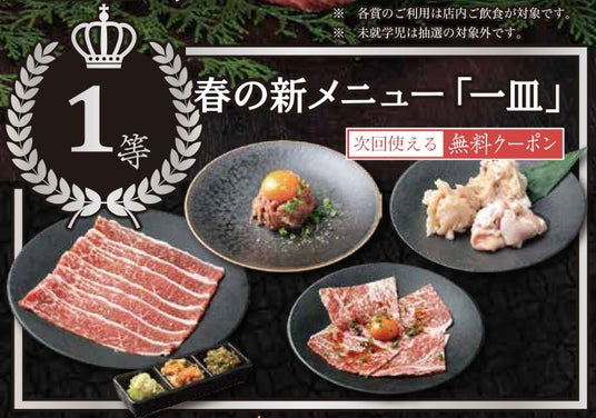 【1等】春の新メニュー1皿無料クーポン