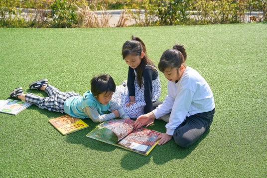 あおぞら図書館さまざまなジャンルの本や絵本を用意。芝生の上やハンモック、ベンチで楽しむことができます