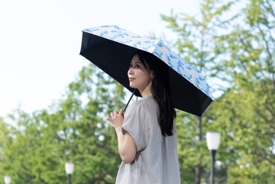 裏面にポリウレタンコーティングを施し、UVカット率99%以上、遮光率99%以上、遮熱効果あり。はっ水加工も施しているので、雨でも晴れでも使うことができます。