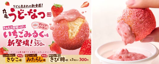 \もっちもちが、とまりません!/うどん生まれの「丸亀うどーなつ」から今度は初めてのディップ きゅんと甘酸っぱい「いちごみるく味」含む新作3種が新登場