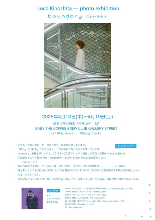 本展示はその一作目のzine「boundary」((かいそう)) )から20点を展示します。