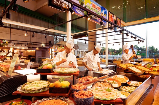 NEWレオマワールドで思いっきり遊んだあとは、ホテルレオマの森自慢の温泉でゆっくりと疲れを癒やしてください。高濃度炭酸泉や薬草湯などの浴槽や、サウナもお楽しみいただけます。夕食ではご当地グルメや季節の料理をバイキング形式でご用意しております。