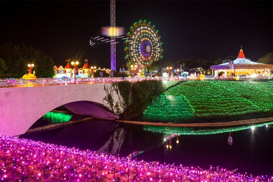 テーマパークならではのアトラクションを楽しむのはもちろん、園内に咲き誇る季節の花を愛でながらのんびり散策をするのもおすすめです。フォトジェニックなスポットを探して、ぜひ記念撮影を楽しんでください。また、2015年からイルミネーションアワードで9年連続受賞をしている「レオマ光ワールド」も必見!ゴールデンウィークには「~奇跡のオーロラショー×花火ファンタジア~」も開催予定です。夏には期間限定でリゾートプール「レオマウォーターランド」が登場するなど、1年を通してお楽しみいただけます。