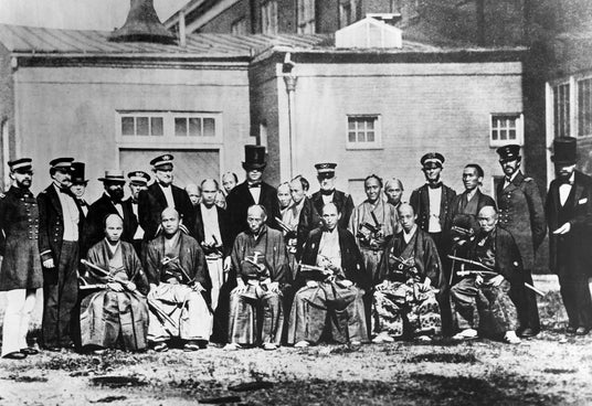 遣米使節として渡米した際の写真(右下段から二番目が小栗上野介忠順)