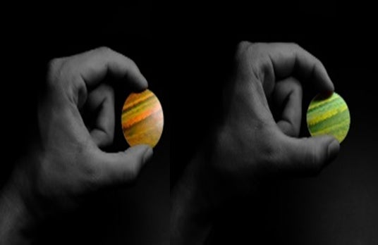 同じ印刷物でも見る角度で色が変化