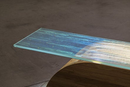 3)構造色ガラスを天面に配置したローテーブル