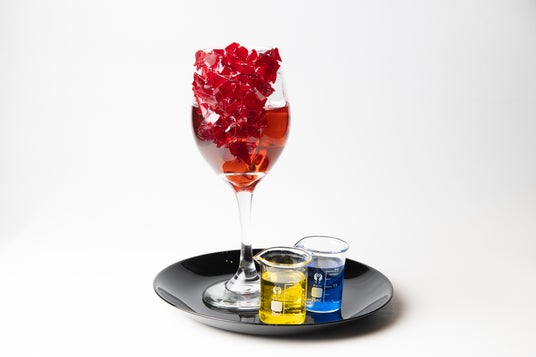 Chemistry “Red yet Black(Red, Yellow, Blue)-赤でありながら黒-”(赤と黒のモクテル) 1,430円グラスの外側に付けた赤い飴がGODZILLAの体表を表しています。見た目には赤いモクテルですが、ミニピッチャーに添えた液体をグラスに注ぐと、全体が黒く仕上がります。色の3原色の視覚効果をモクテル化した一品です。