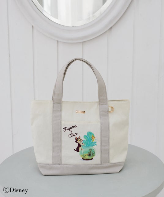 デイリー使いにぴったりのキャンバス生地のトートバッグは、「フィガロ」と「クレオ」が仲良くじゃれ合う姿のアートをプリント。フロントにはDカンをプラスし、トレンドのチャーム使いも楽しめるデザインに仕上げました。