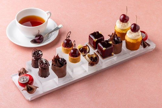 甘酸っぱくジューシーなチェリーのスイーツは、それぞれに変わる食感と大人の味わいに仕上げました。香り高い紅茶と、塩味の効いたセイボリーまで、バラエティ豊かなアフタヌーンティーメニューを取り揃えています。