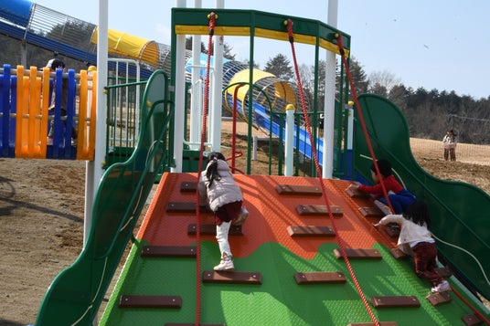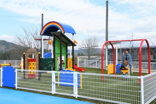 障がいの有無に関係なくみんなで遊べるインクルーシブ遊具「インクルーシブ」とは、障がいの有無などに関係なく誰もが一緒になって遊べるという意味を持っています。幼児用遊具には、車いすで遊具場所まで直接行けるスロープを設けたり、体をホールドできるブランコなどを取り入れ、障がいの有無に関係なく、一緒に遊べるように配慮されています。