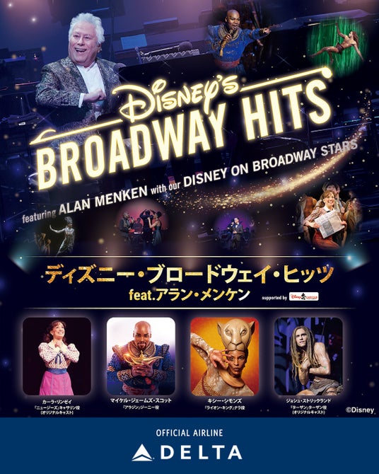デルタ航空は、2025年7月1日(火)~3日(木)に東京国際フォーラムで開催される「ディズニー・ブロードウェイ・ヒッツfeat.アラン・メンケン supported by ディズニー★JCBカード」のオフィシャル・エアラインとして、出演者やスタッフの来日をサポートします。