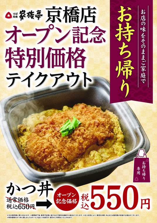※販売期間中に、家族亭 京橋店への来店・ご利用(店内飲食またはテイクアウト)ごとに何度でもキャンペーンが適用されます。