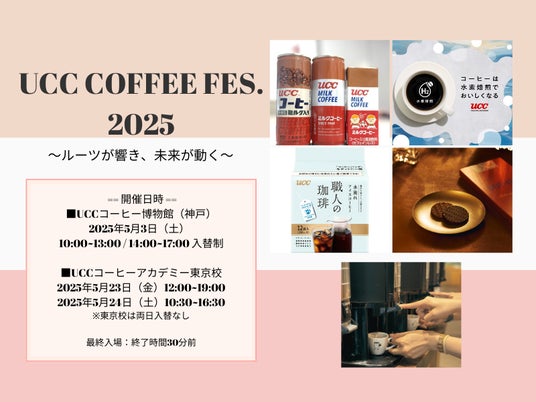 「UCCコーヒーアカデミー」は、5月3日(土・祝)にUCC コーヒー博物館、5月23日(金)~24日(土)にUCCコーヒーアカデミー東京校にて、参加費無料の特別イベント「UCC COFFEE FES. 2025 ~ルーツが響き、未来が動く~」を開催いたします。