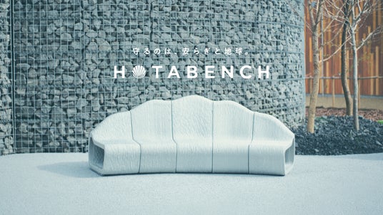 HOTABENCH(ホタベンチ)は、ホタテの廃棄貝殻から生まれたサステナブルなベンチです。約1,000枚もの廃棄貝殻をリサイクルするだけでなく、3DプリントによってCO2削減にも貢献。これまで廃棄されてきたホタテの貝殻に新しい命を吹き込みます。