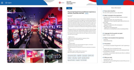 Expo 2025 Official Experiential Travel Guides:https://www.expo2025travel.jp/top/search/