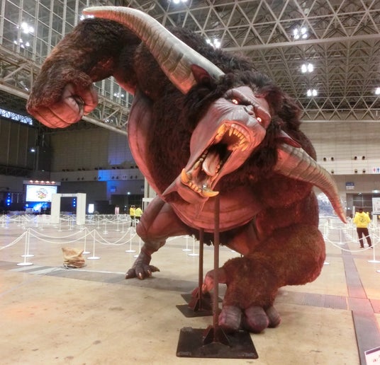 禍々しくうねった2本の角と鋭く伸びた牙が特徴のモンスター「ラージャン」のほぼ実寸大のバルーンが登場いたします。