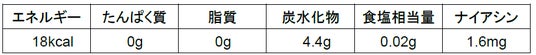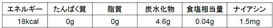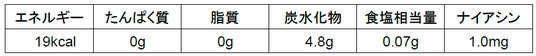 ナシエキス/酸味料、香料、塩化K、乳酸Ca、酸化防止剤(ビタミンC)、ナイアシン