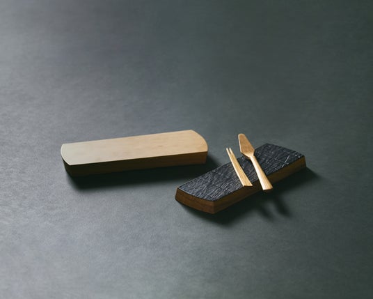福岡県在住の木工家・酒井航氏(DOUBLE=DOUBLE FURNITURE)は、樽材内側の焼きを活かして、幅・形・厚みが1点として同じものが存在しないカッティングプレートと、樽材の曲がりRを矯正せずに活かした二股フォーク、そして自身のオリジナルディテールをマイナーチェンジし、塗るという行為に特化したパテナイフを製作。カッティングプレート¥7150/ヒメフォーク¥2200/パテナイフ¥2750