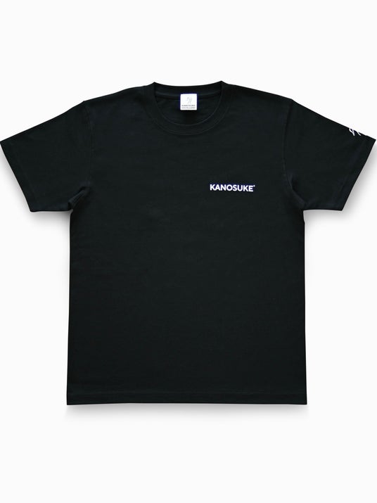 嘉之助蒸溜所のオリジナルTシャツ。前面胸にKANOSUKEロゴ、背中に蒸溜所ロゴ、左袖に鶴のブランドマークが入っています。U.S.コットンを100%使用しているので、生地の厚みと着心地の良さに定評あり。MとLの2サイズ展開。