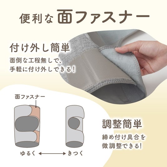 巻きつけるカバーは面ファスナーで固定するため、締め付け具合を微調整できるよう設計されています。