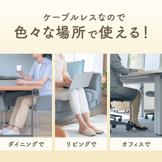 充電式のため、ケーブルレス。お部屋のどこでも気兼ねなく使えます。オフィスなどでもおすすめです。