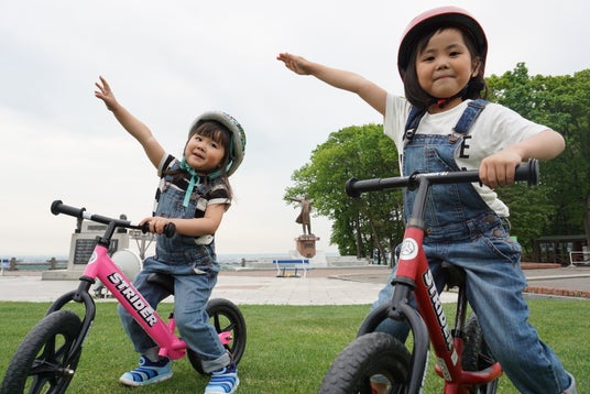 足で地面をけって進むランニングバイク「ストライダー」を楽しめるエリアを設置。ストライダーは無料で貸し出します。羊ケ丘の雄大な自然を感じながら遊ぶことができます。
