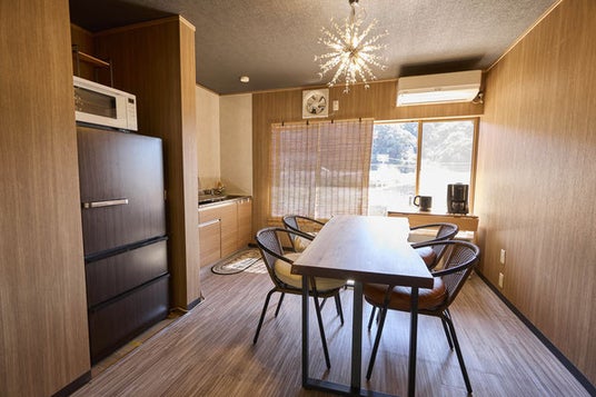 最大11名まで泊まれるワーケーション対応の「エリアA」と、少人数向け「エリアB」の2タイプを用意。バーベキュー・高級ユニットバス・高速Wi‑Fi完備で家族旅行から合宿まで幅広く対応